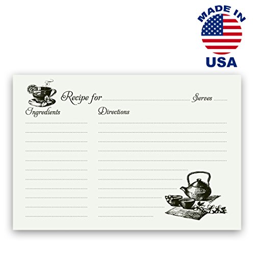 RECIPE card set of 50 identical double sided 4x6 teapot and cup cards. Great for Bridal Shower or housewarming gifts. Made in USA.