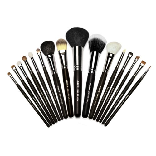 The brushes in this set are: Large powder brush, duo fiber brush, blush brush, foundation brush, concealer brush, blending fluffy brush, blending softly dense brush, 3 different size eyeshadow brush, pencil brush, short shade smudge brush, small angel brush, flat definer brush, precise eyeliner brush. 0