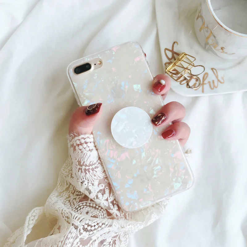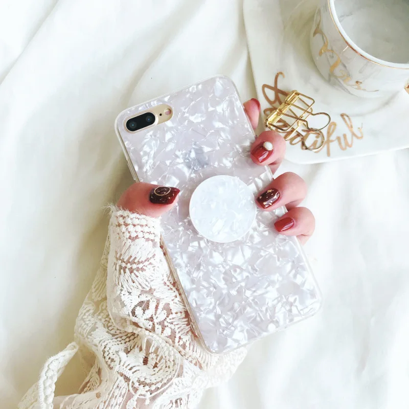 Features:Marbel Silicone Grip Stand Holder Phone Case