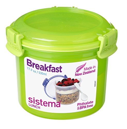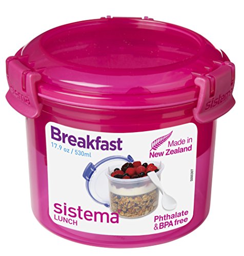 Sistema To Go Collection Breakfast Bowl Food Storage Container, 17.9 Ounce/ 2.2 Cup, Blue or Pink or Green Color