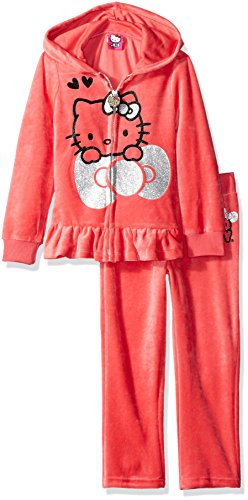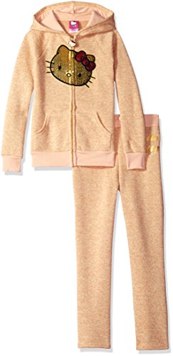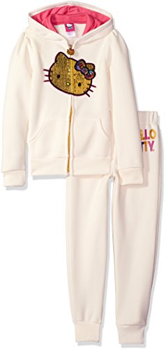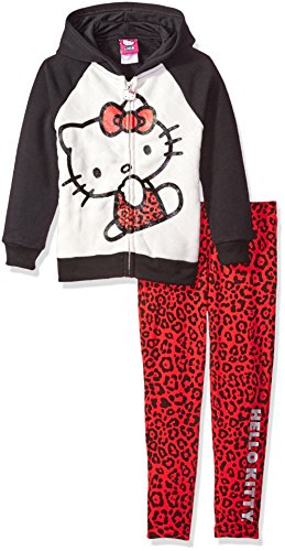Hello Kitty Big Girls' 2 Piece Hooded Fleece Active Set, Black 85692, 12