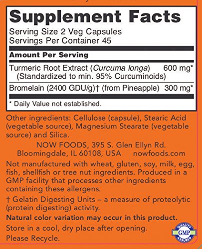 NOW Turmeric and Bromelain Veg Capsules, 90 Count