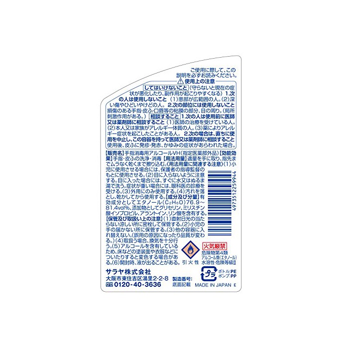 원본상품명: サラヤハンドラボ 手指消毒アルコ?ルスプレ?VH 300mL [指定??部外品]