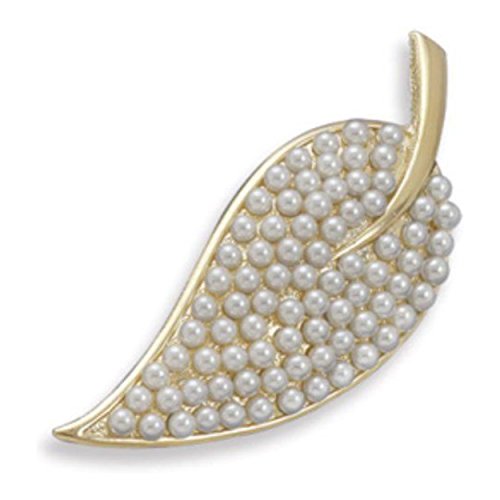 The polished finish of this leaf pin lends a warm luster that contrasts beautifully with the shimmer of the simulated pearls; a lovely heirloom-inspired bridal accessory.