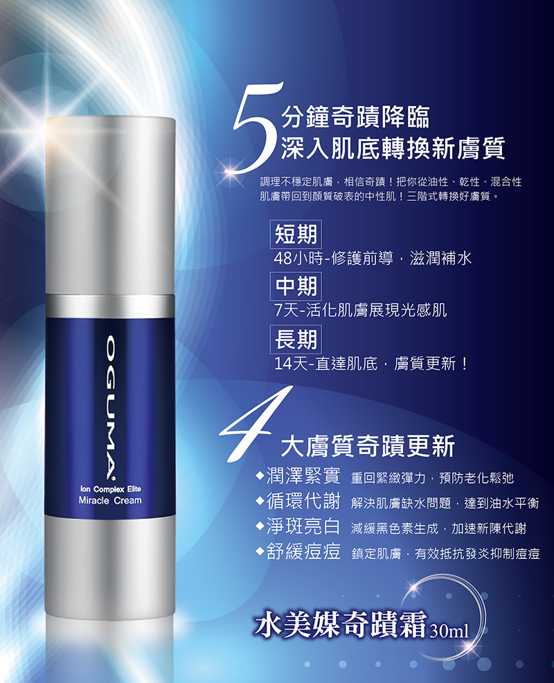 Oguma AquaKey 2X, containing minerals extracted from the deep sea, is of high organic nutrients concentrations to support revival of skin and hair cells.