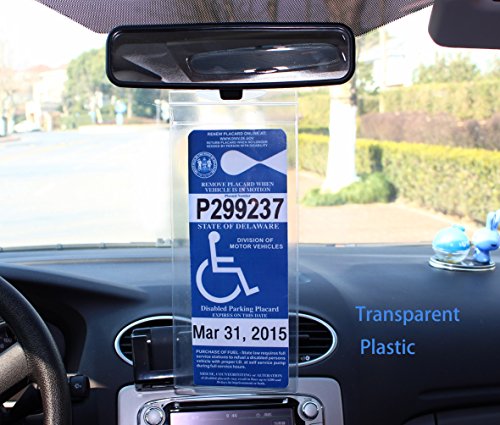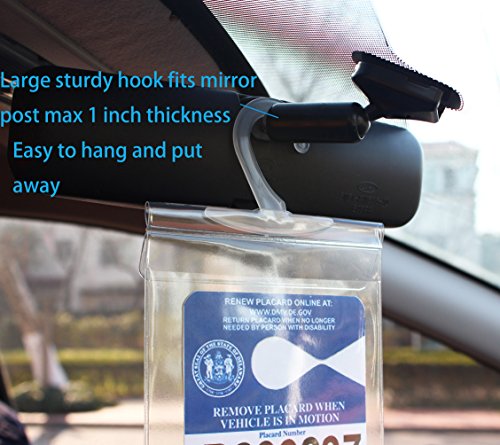 LotFancy Handicap Parking Placard Holder Cover - Disabled Parking Permit Holder with Larger Hook - Pack of 3