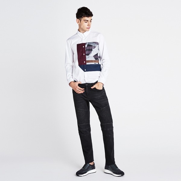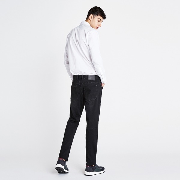 고시감 있는 스트레치의 BACK 기모 소재, 무릎 부분에 주름과 절개 디자인과 뒤 주머니에 지이크 파렌하이트 시그니처가 들어간 슬림팬츠 입니다.