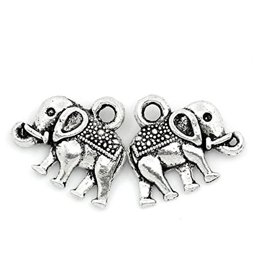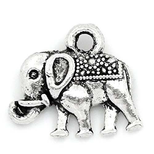 Housweety 50PCs Charm Pendants Elephant Animal Silver Tone 14mmx12mm(4/8"x4/8")