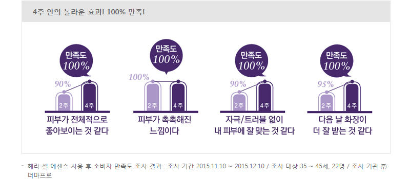 | A first-step essence that delivers moisture deep into skin to prevent desertification of skin for a bright, dewy complexion that glows from within. Prevents "desertification of skin" and moisturizes skin for a bright, dewy complexion As we age, we experience a number of skin problems including dry, tight and rough skin with a gradual build up of dead skin cells. HERA carried out research on 129 Korean women and defined the core of these problems as Skin Desertification™. CELL ESSENCE is a functional essence that prevents Skin Desertification while delivering moisture deep inside to leave skin clean, clear and flawless. Eight skin cell activators for glowing, youthful skin Cell-Bio Fluid Sync ™ 2.0 contains eight skin cell activating ingredients that boosts the strength of skin to keep it healthy. Experience how your skin changes after using CELL ESSENCE with softer, brighter skin hydrated from deep within. Customer satisfaction after using HERA CELL ESSENCE : Survey of 22 women (between the age of 35-44) conducted from 11/10/2015 to 12/10/2015 by Dermapro First-step skincare essence This water-type essence is used at the first step of skincare routine after cleansing. It boosts the absorption of the following skincare products for maximum efficacy. Cell-Bio Fluid Sync™ 2.0 Based on the research into body fluid within skin, AMOREPACIFIC developed Cell-Bio Fluid Sync™ that simulates body fluid and contains skin-activating energy. Through more innovative technology, it has now evolved into Cell-Bio Fluid Sync™ 2.0 that will stimulate and maintain skin-activating energy inside skin to boost its strength. |