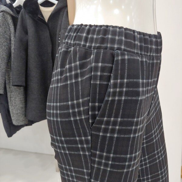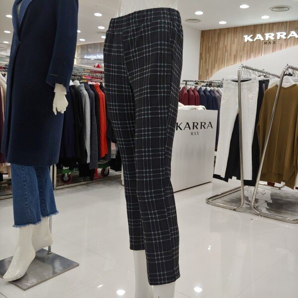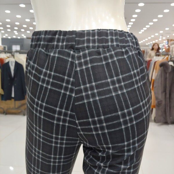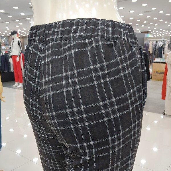 블랙체크와 더불어 블루와 그레이의 어울림이 스타일링에 좋고 웨스트 전체 밴드를 드리워 보다 편한 착용감을 드립니다