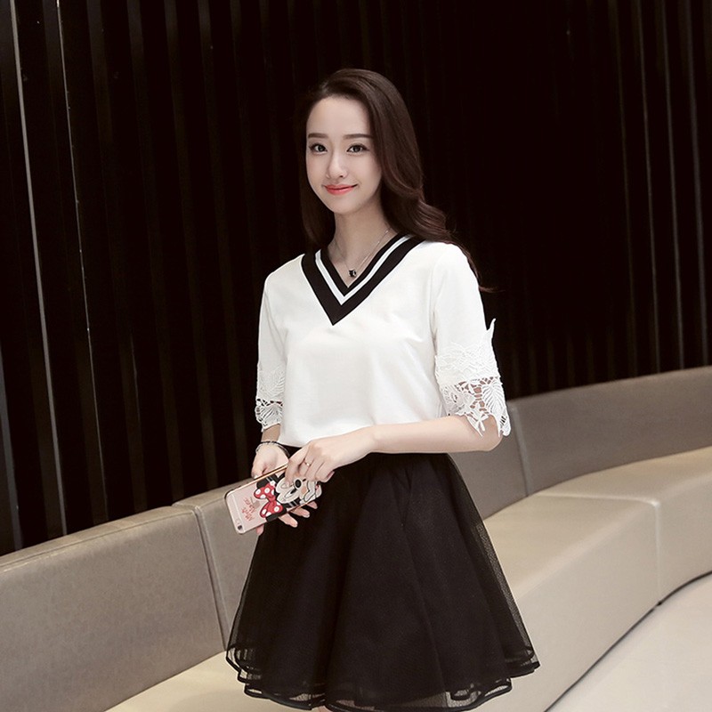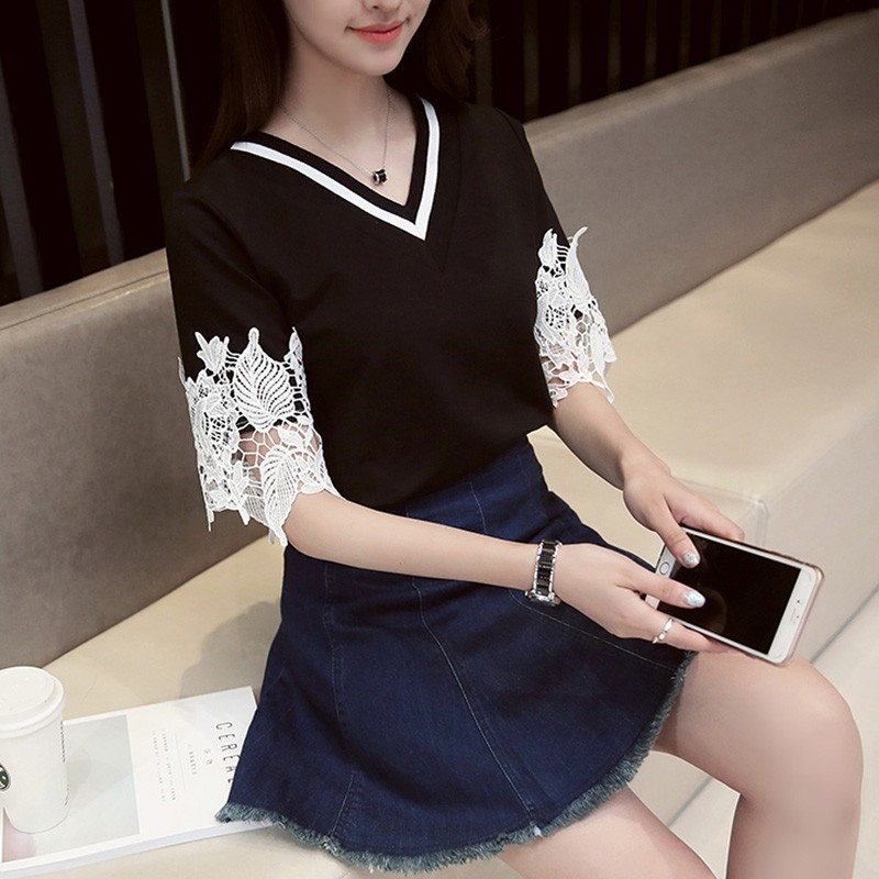 レース付き無地Tシャツ♪