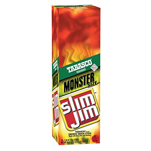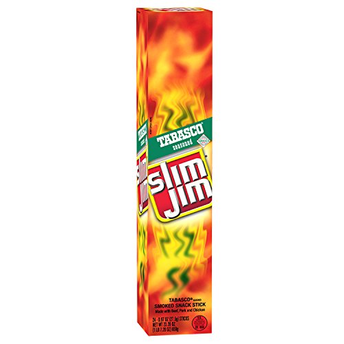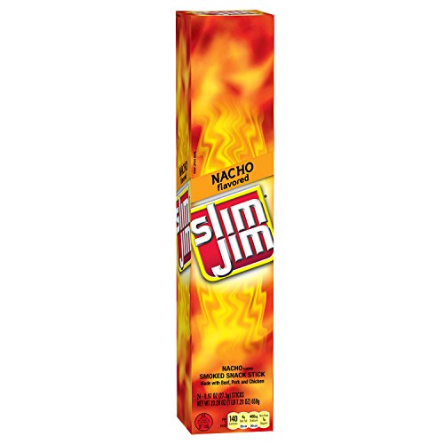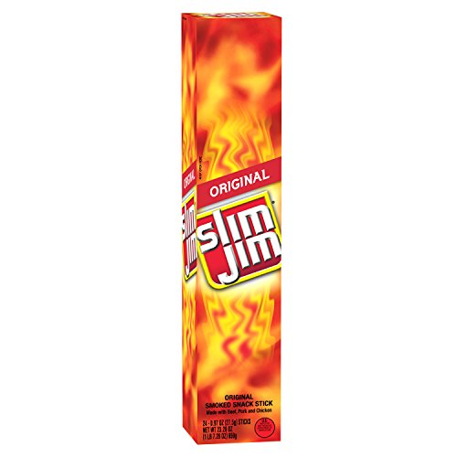 Slim Jim Smoked Snack Sticks, 0.28oz package, come in one box of 100 individually wrapped meat sticks, so you always have a strong, man-sized supply snack sticks on-hand. Slim Jim Smoked Snack Sticks are full of intense, smoky flavor made from beef, pork, chicken, and spices. Our snack stick can provide you an instant boost to your menergy levels and are made in the USA.