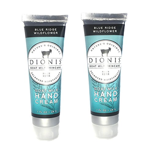 Two item set that includes two 1-oz tubes of Dionis Goat Milk Hand Creams in Blue Ridge Wildflower scent.