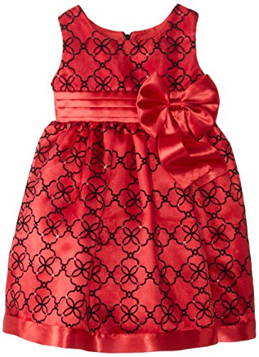 Jayne Copeland Little Girls' Flocked Organza with Satin, Red, 4