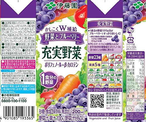 原材料:野菜(にんじん、レッドビート、トマト、大根、有色甘藷、レタス、赤ピーマン、インゲン豆、ケール、ピーマン、白菜、ブロッコリー、セロリ、アスパラガス、かぼちゃ、小松菜、あしたば、パセリ、クレソン、キャベツ、ラディッシュ、ほうれん草、三つ葉)、果実(りんご、ぶどう、ブルーベリー、レモン、オレンジ)/香料