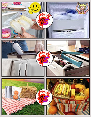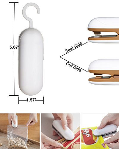 Product Description High temperature sealing-works quick. Unique lock pothook, feel assured and safe to use it. This mini sealing can seal most plastic bags of home, office and kitchen. This bag sealer is a light-weight and portable bag sealer. You can bring it to your camping, beach and office. Specification Name: Portable heat bag sealer Power: 2pcs AA batteries Size: 1.57″×1.4″×5.67″ Material: ABS plastic Weight: 1.62 OZ Application Notice: 1.Unheated after installing battery, only heated after pushing down. 2.Only keep pushing 3~5 seconds to heat up. 3.Put bags into heat sealer's opening and do gently press, at the same time, drag the bag's seal(drag thin plastic bags faster, drag thick plastic bags slowly). 4.After each use, need not take out the battery. Just locked sealer's opening with the pothook. 0