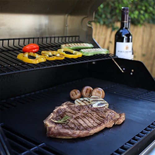 100% Non-stick-Non-stock BBQ grill mats prevent even the smallest morsels from falling through the grates.Simply lay the non stick barbecue grill mat cover over the grill surface and place your chicken,steak,fish,vegetables,kebabs or whatever you wish to grill directly on the mat.