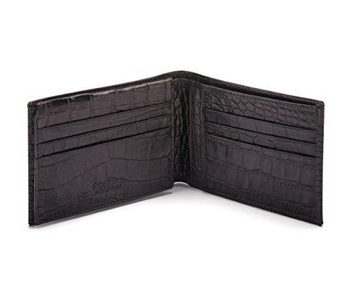 Studio : SageBrown Publisher : SageBrown Binding : Apparel Product Description Handmade in beautiful fine calf leather this hip pocket wallet comes in a range of sumptuous classic and contemporary colours with a smooth or crocodile skin texture. All your essential cards cash and identification can be stored in one handy sized wallet. The front and back are stylishly plain and are ideal for personalisation. On opening the wallet on the left there are three card slots with beautiful turned edges. Flip up this section to reveal three more card slots 1 slip pocket and an ID window. On the right are another three card slots with a slip pocket behind. The double note section at the back has a leather bound divider and is lined in beautifully soft contrast suede. 0