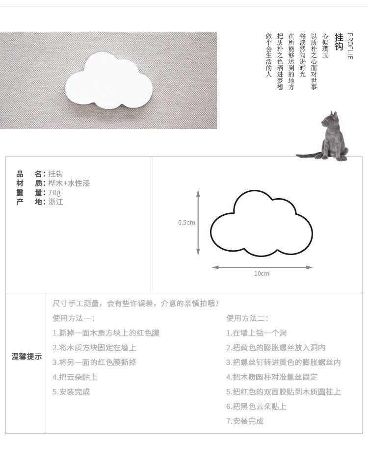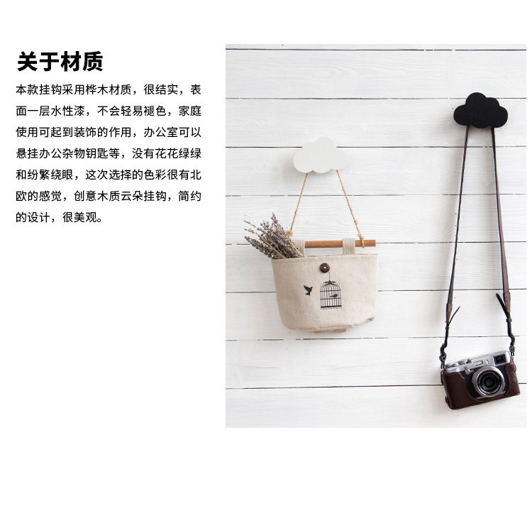 创意木质云朵挂钩墙上装饰挂钩墙面装饰挂衣钩
