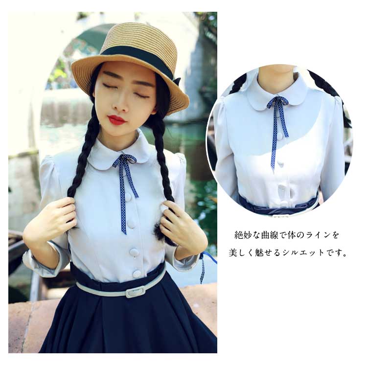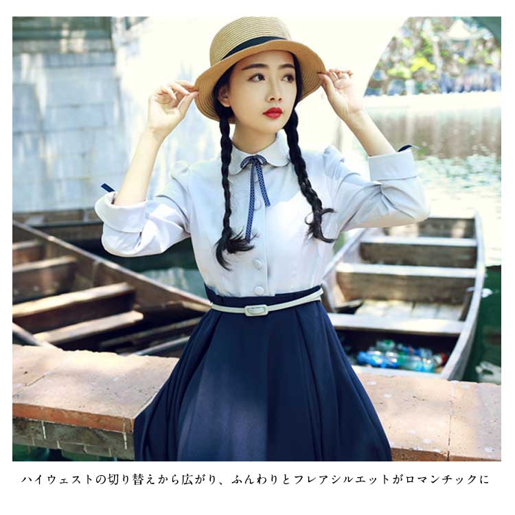 | 暖かい日差しを浴びながら優雅にアフタヌーンティーを楽しむ、ロマンチックなシーンが似合うレトロ風ワンピース!特徴的なピーターパンカラーがかわいらしさもしっかり演出☆爽やかな印象の色は清潔感溢れる、 思い出の味に満ち溢れています。 ハイウェストの切り替えから広がり、ふんわりとフレアシルエットがロマンチックに 絶妙な曲線で体のラインを美しく魅せるシルエットです。 たっぷり生地使いでドレープがきれいに出るように計算されたサイズ感。 お洒落心躍る、一目ぼれデザイン『ワンピース』は普段使いからフォーマルシーンまで活用できます。 | |