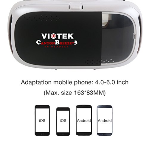 -. Binding : Electronics -. Brand : Viotek -. EAN : 0856594006245 -. Feature : Play virtual reality and 3D games and watch 3D movies, 360⁰ videos, and more! Compatible with Google Cardboard VR games / Altogether a lightweight 290G (0.6lbs), 30% lighter than other similar products / Low weight and adjustable headband work together to decrease pressure against different facial areas / Airflow vents help release heat generated by phones after long periods of use / Peripheral windows allow for the use of your phone's AUX, OTG, or charger ports while you watch -. Label : Viotek -. Manufacturer : Viotek -. PackageQuantity : 1 -. ProductGroup : Speakers -. ProductTypeName : CE_ACCESSORY -. Publisher : Viotek -. Studio : Viotek -. Title : Viotek Canyon Breeze V3+ - 2016 award winner -3D VR glasses and Virtual Reality headset for 3D games and VR movies. -. UPC : 856594006245