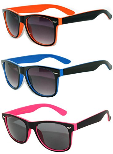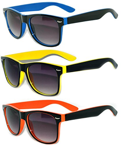 Sunglasses listed by OnlineWelcome. 100% guarantee picture and glasses match. Retro Vintage Two Tone colored frame Sunglasses 3 Pairs - Yellow, Blue, White 99% UVB UVA protection PC Smoke Lens 2tone colored frame sunglasses smoke lens Brand : OWL EAN : 0863389710010 Package Dimensions(LxWxH) : 16x12x4cm ; 23 g