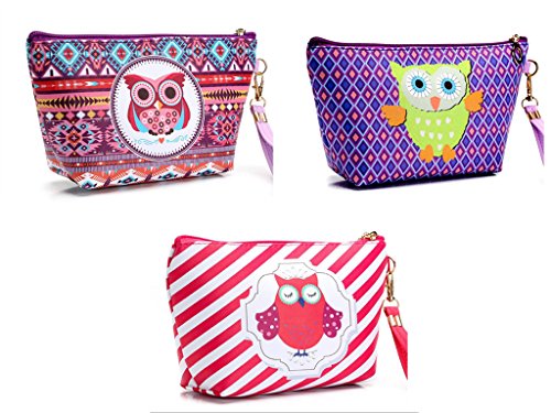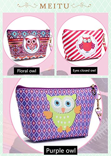 Set of 3 cosmetic bags have 3 different Colour(Floral owl,purple owl,eyes closed owl) for you to make distinctions easily. Exchange use or share with friends, are a good choice