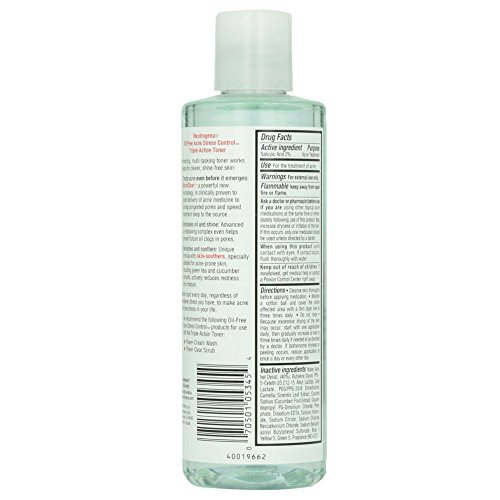 Help stop acne before it even emerges with a refreshing, multi-tasking toner that works in 3 ways for clearer, shine-free skin. Neutrogena Oil-Free Acne Stress Control Triple-Action Toner: 1) Treats acne even before it emerges through MicroClear, clinically proven to boost the delivery of acne medicine to unclog congested pores. 2) Eliminate oil and shine, while helping to prevent future oil clogs. 3) Delivers a unique formula of skin-soothers, such as green tea and cucumber extracts, to reduce redness and irritation. Make acne one less stress in your life with Neutrogena Oil-Free Acne Stress Control Triple-Action Toner.Feature
