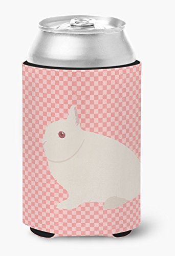 Caroline's Treasures BB7964CC Hermelin Rabbit Pink Check Decorative, Can Hugger, Multicolor