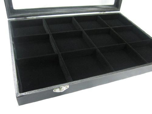 -. Binding : Kitchen -. Brand : Princess-J -. Color : Black -. EAN : 0030800050011 -. Feature : Black velvet 12 compartment to hold your jewelry items. / Wooden case is coated with a black leatherette; / Handy-size case, measures: 13.78"x9.45"x1.65" (35x24x4.2cm); / each compartment: 3.15"x2.76" (8x7cm); / Please noted that the item is shipped from HONG KONG -. Label : Skyblue -. Manufacturer : Skyblue -. Model : DSPEGT0005 -. PackageQuantity : 1 -. ProductGroup : Kitchen -. ProductTypeName : HOME -. Publisher : Skyblue -. Size : 35Lx24W -. Studio : Skyblue -. Title : Black Velvet 12 Compartment Counter Glass Top Lid Display Case / Tray / Box /Organizer / Holder for Jewelry Retail Shop -. UPC : 030800050011