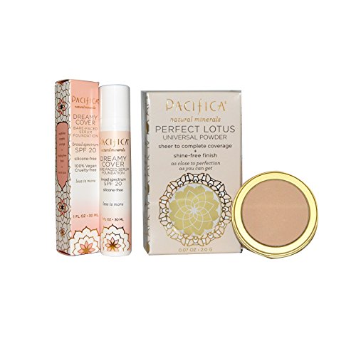-. Feature : This bundle includes one 1 fl. oz. of Pacifica Dreamy Cover Serum Foundation (Medium/Tan), and one .07 fl. oz. of Pacifica Perfect Lotus Universal Powder (Natural) with Coconut and Jojoba Oil / This feather-light weightless fluid foundation has incredible coverage with a finish that looks and feels makeup free. Shade-matching minerals work with your natural complexion and allow for adjustable, seamless perfection that leaves your skin looking healthy and bright. / 100% physical broad spectrum SPF 20 provides both UVA and UVB protection. 100% vegan, cruelty free and formulated without silicone, animal ingredients, petroleum, parabens, or phthalates. / Reflective, brightening minerals and natural beneficials that hide the effects of fatigue, minimize lines and dark circles. A brighter future for your skin.