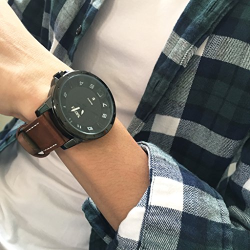 Brand, Seller, or Collection Name:Wolfteeth Part Number:306803US Model Year:2017 Item Shape:Round Dial window material type:Glass Display Type:Analog Clasp:Buckle Case material:Metal Case diameter:48 millimeters Case Thickness:12 Band Material:Synthetic leather Band length:Men's Standard Band width:23 millimeters Band Color:Brown Dial color:Black Special features:Backup battery Item weight:2.08 Ounces Movement:Analog quartz
