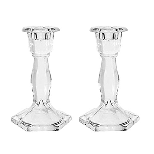 Hosley's Set of 2 Clear Glass Taper Candle Holders - 5.9" High. Ideal for Weddings, Party, Spa, Gifts, Reiki