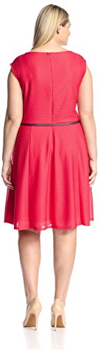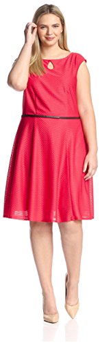 Textured cap sleeve fit-and-flare dress with front keyhole and belted waist