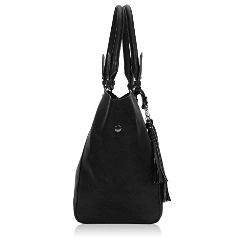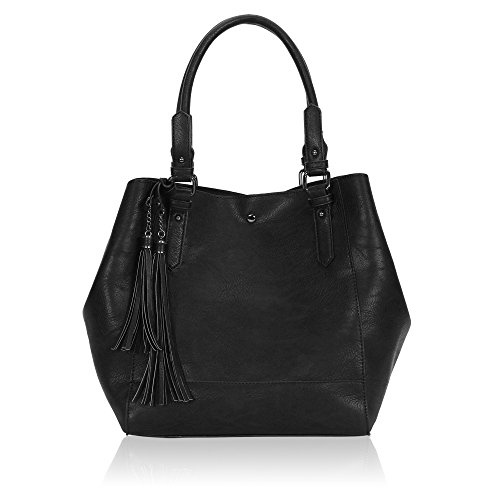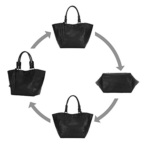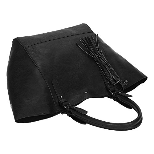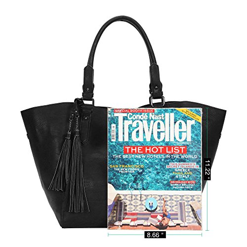 -. Brand : Hynes Victory -. Color : Black -. Department : womens -. Feature : Magnetic buckle closure / High-end soft synthetic leather. Shiny metal hardware, Fabric lining / Structure: 1 main large compartment practical tote bag. Detachable Purse: Inside has 1 center zip divider. Contains 2 slip pockets and 1 zip pocket / Dimensions: Tote bag: 11.42"L x 6.30"W x 12.99"H. Detachable Purse: 13.80"L x 4.33"W x 10.24"H. Handle drop: 7.87". Weight: 1.79 pounds / The shape can be changed. And the removable purse that comes with it, via buttons can be snapped into place inside to make for a more organized space! -. PackageQuantity : 1 -. ProductGroup : Shoes -. ProductTypeName : HANDBAG -. Size : Large -. Title : Hynes Victory Womens Tassels Large Tote Handbag with Pouch Purse