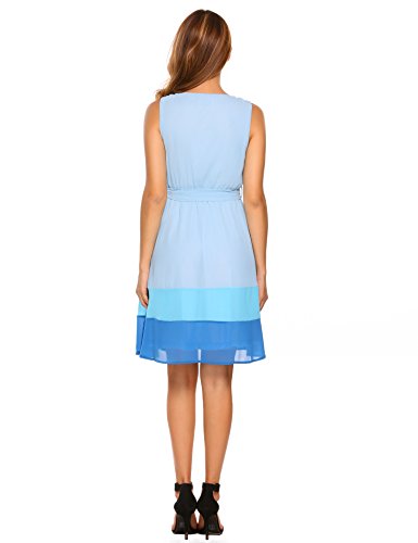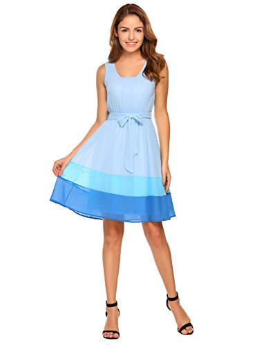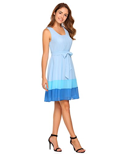 Zeagoo Women Sleeveless Belted Color Block A-Line Chiffon Dress This sleeveless chiffon dress gives you a comfortable and relaxed fit! A must have item for this summer!!