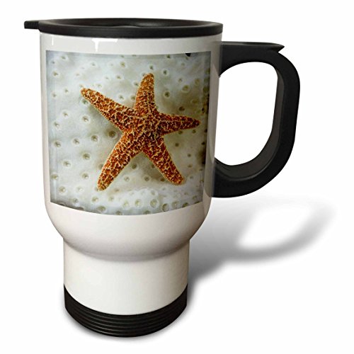 3dRose tm_41624_1 Star Fish on Coral Travel Mug, 14 oz, White