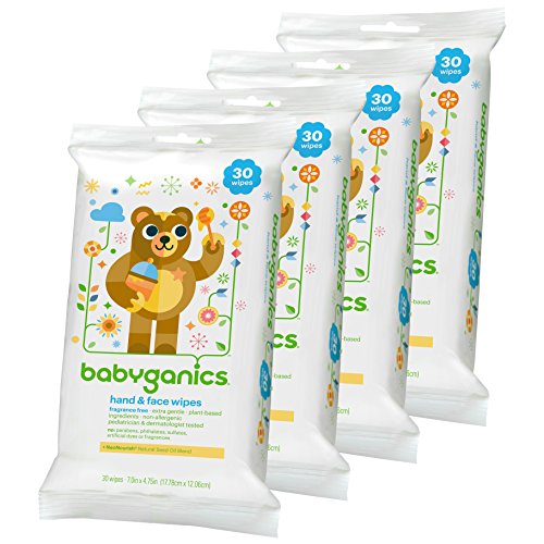 Babyganics Hand And Face Wipes Fragrance Free, 30 Count, Pack of 4