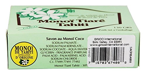 Monoi Tiare Tahiti Coconut Soap Bar (Pack of 2) With Coconut Oil, Natural Essence and Monoi, 4.55 oz