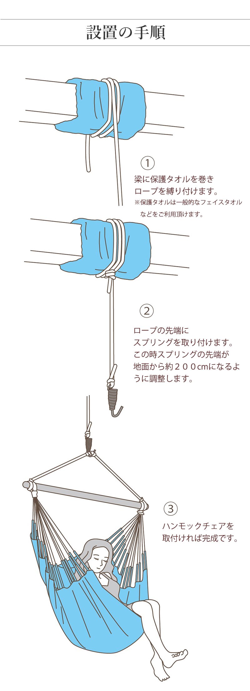 It's really nice. Even if I am 100 kg, it is okay as the beam is solid. Hammocks are okay at all! Because accessories, ropes and springs are also included, we did not purchase various additions. Watching the outside look coffee.I hesitate to go to sleep here. Long ago, if you had this chair while breastfeeding, maybe it was not that hard