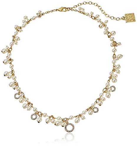 Anne Klein "Shake It Up" Gold-Tone, White Pearl and Crystal Cluster Collar Necklace, 15" + 3" Extender