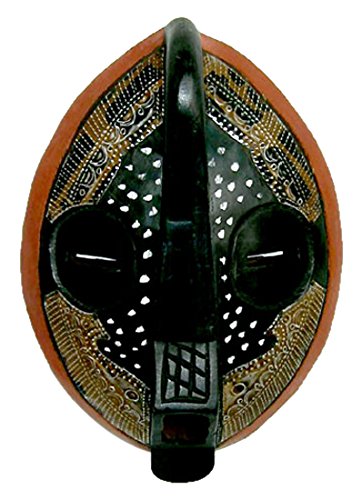 NOVICA Decorative Large Sese Wood and Brass Mask, Black, 'Come Home'