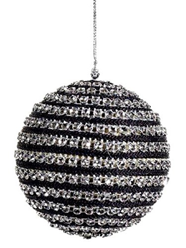 Allstate Contemporary Striped Black and Silver Sequined Christmas Ball Ornament, 4"