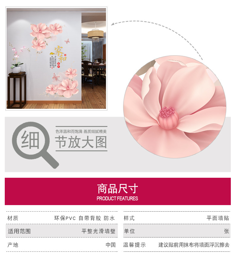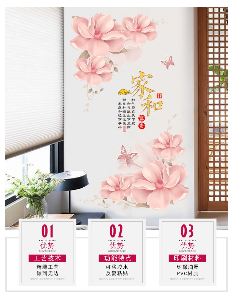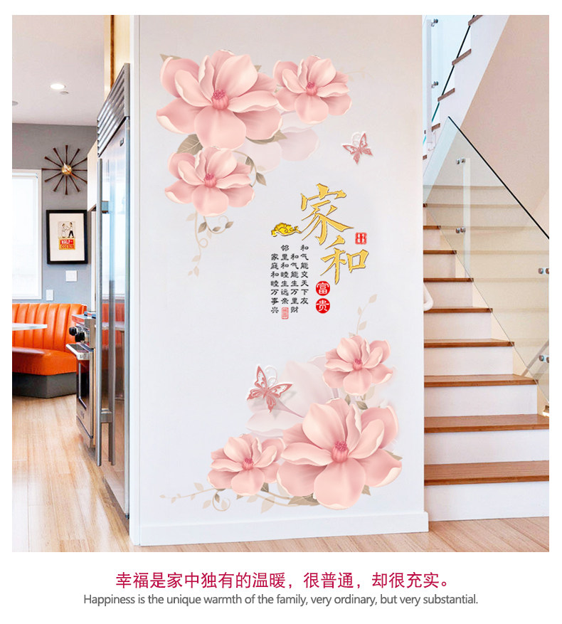 创意家和花朵墙壁装饰贴纸墙画自粘墙纸贴画客厅玄关卧室温馨墙贴