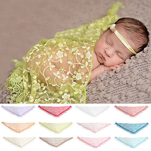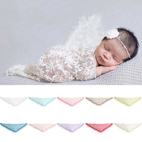 -. Title : Newborn Baby Soft Silk No-Stretch Lace Trim Crochet Knitted Wraps Photography Props