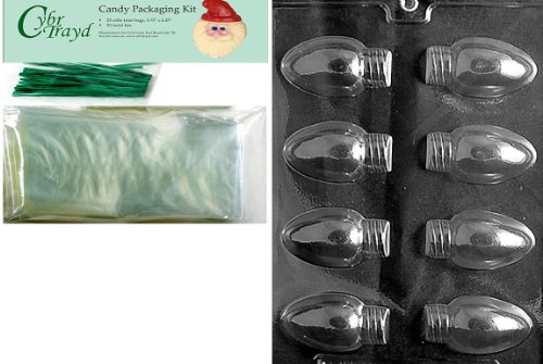 Cybrtrayd MdK25G-C431 Christmas Lights Christmas Chocolate Mold with Packaging Kit, Includes 25 Cello Bags and 25 Green Twist Ties