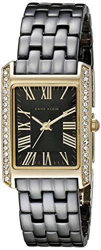 Anne Klein 2138BKGB women's watch features a 23mm wide and 8mm thick yellow gold plated solid stainless steel case with Swarovski crystals accented fixed bezel and textured push-pull crown. Anne Klein 2138BKGB is powered by quartz movement. This beautiful watch also features a textured black dial with white accents gold tone luminous hands and Roman numeral hour markers, scratch resistant mineral crystal and splash water resistant. Anne Klein 2138BKGB is equipped with a 16mm wide black ceramic bracelet with a jewelry clasp. Anne Klein 2138BKGB women's black dial black ceramic bracelet Swarovski crystal watch is brand new and comes in an original Anne Klein gift box and is backed by a 2 years limited warranty.Feature
