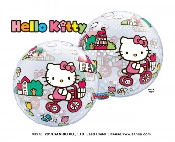Design: Clear balloon features Hello Kitty riding her tricycle through town