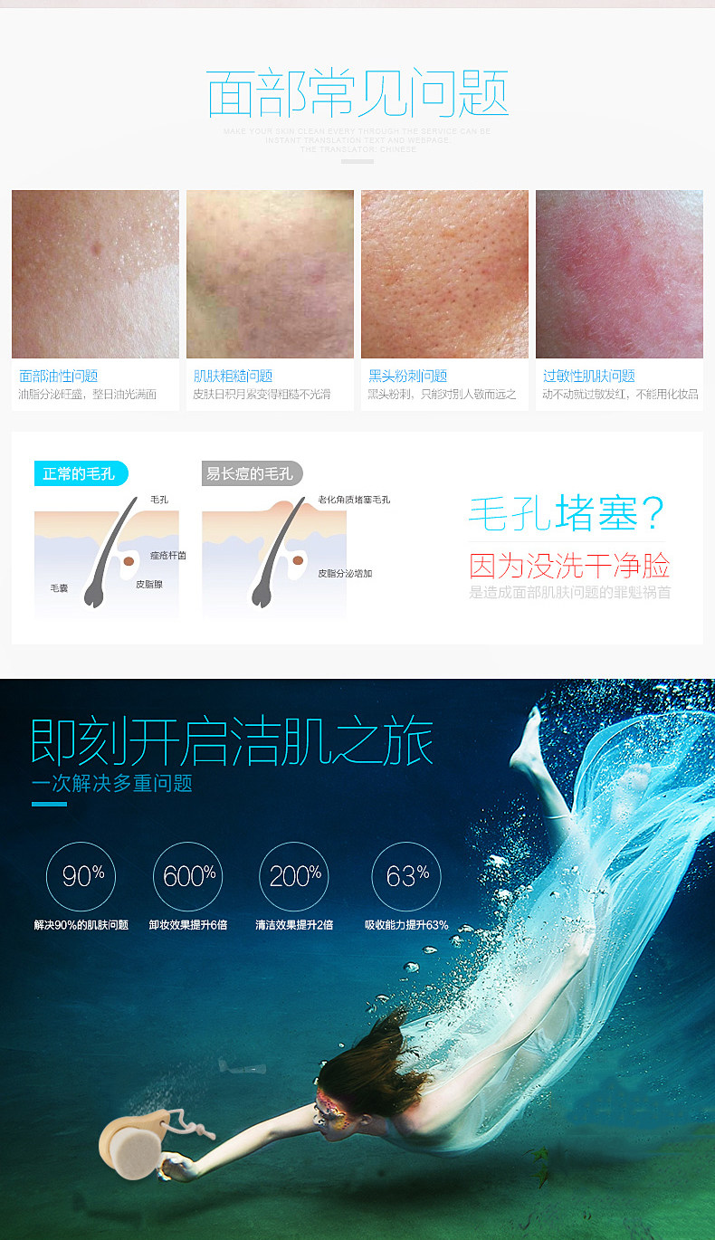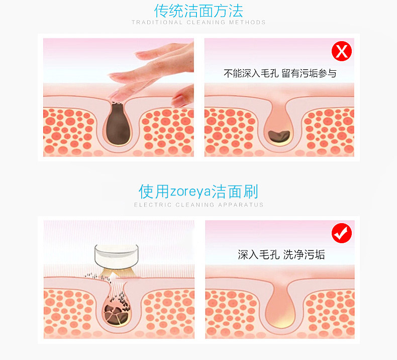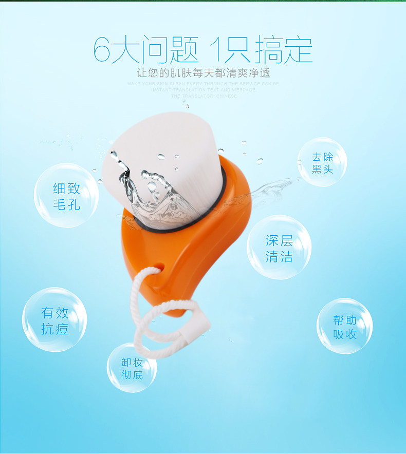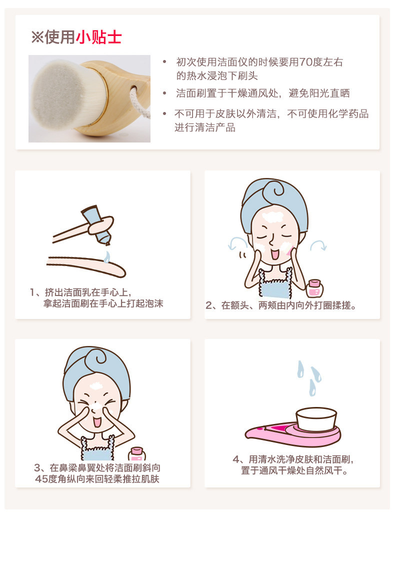 深层清洁,极细纤维毛刷,能深入每个毛孔,去除肌肤内部的污垢和多余油脂角质,鼻翼两侧也能彻底清洁,有效防止黑头产生