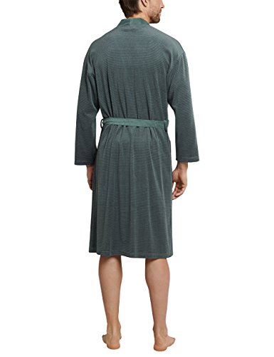 anthrazit-grun geringelter Bademantel fur Herren aus der SCHIESSER-Serie "Helsinki" mit Bindegurtel und zwei aufgesetzten Taschen Blende und Gurtel unifarben in Grun in hochwertiger, weicher Leichtfrottee-Qualitat